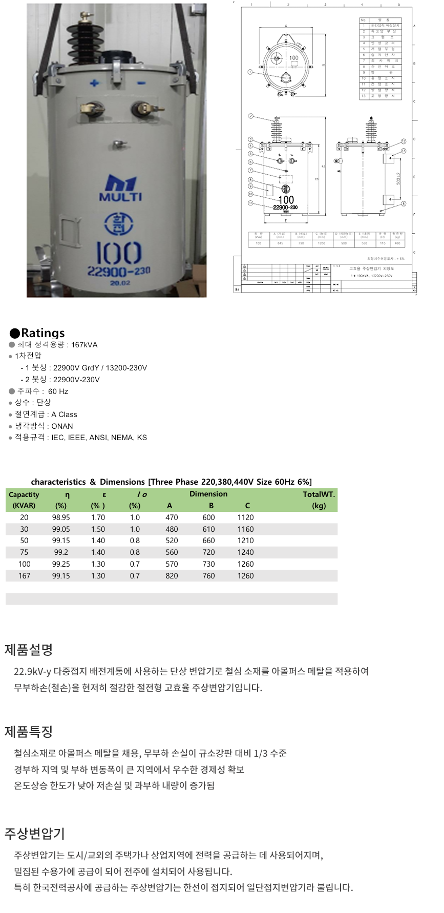 한전주상용 변압기